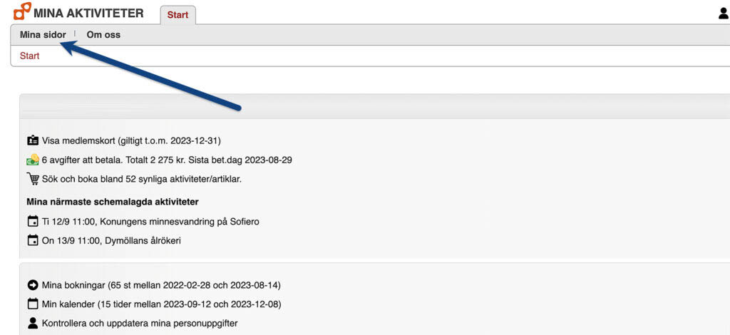Mina Sidor är en del av vårt system Mina Aktiviteter.